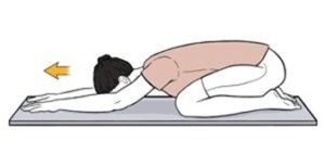 Sitting on your heels with your back straight. Slowly bend forward, place your forehead on the ground in front of you, and rest your torso on your knees. Extend your arms in front of you with the palms facing down. Do this for 1 minute.